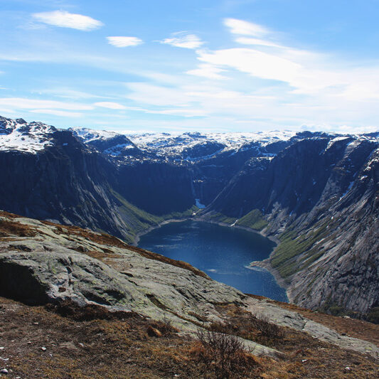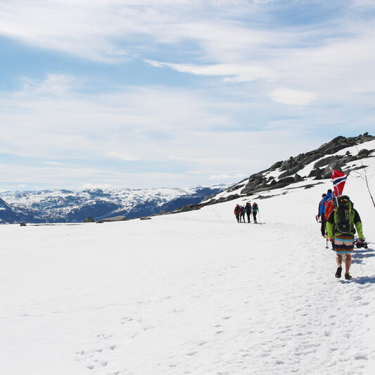 Det er kun en meget lille del af sesonen der tillater, at man hiker uten en guide, men vi anbefaler faktisk en guitet tur uanset. Det viser sig, at mange turister, som tager denne hike uden guide, oplever at de ikke kan finne Trolltunga punktet til at starte med, fordi det ligger en smule skjult, og avmerkningerne i dette område kan misforstås. Du får en masse fantastiske historier om området, og du er garanteret å bli sent på den smukkeste rute. Du kan med fordel kontakte Trolltunga Active, som arrangerer flere typer hikes og turer ud til Trolltunga – du kan endda overnatte oppe i fjellene og se solnedgangen og solopgangen, som er et fantastisk syn. De dyktige og veluddannet guides sørger for at få dig sikkert frem og tilbake, tempoet tilpasses efter gruppen og du får en hike fullt med høyt humør og god energi hele vegen igennem.